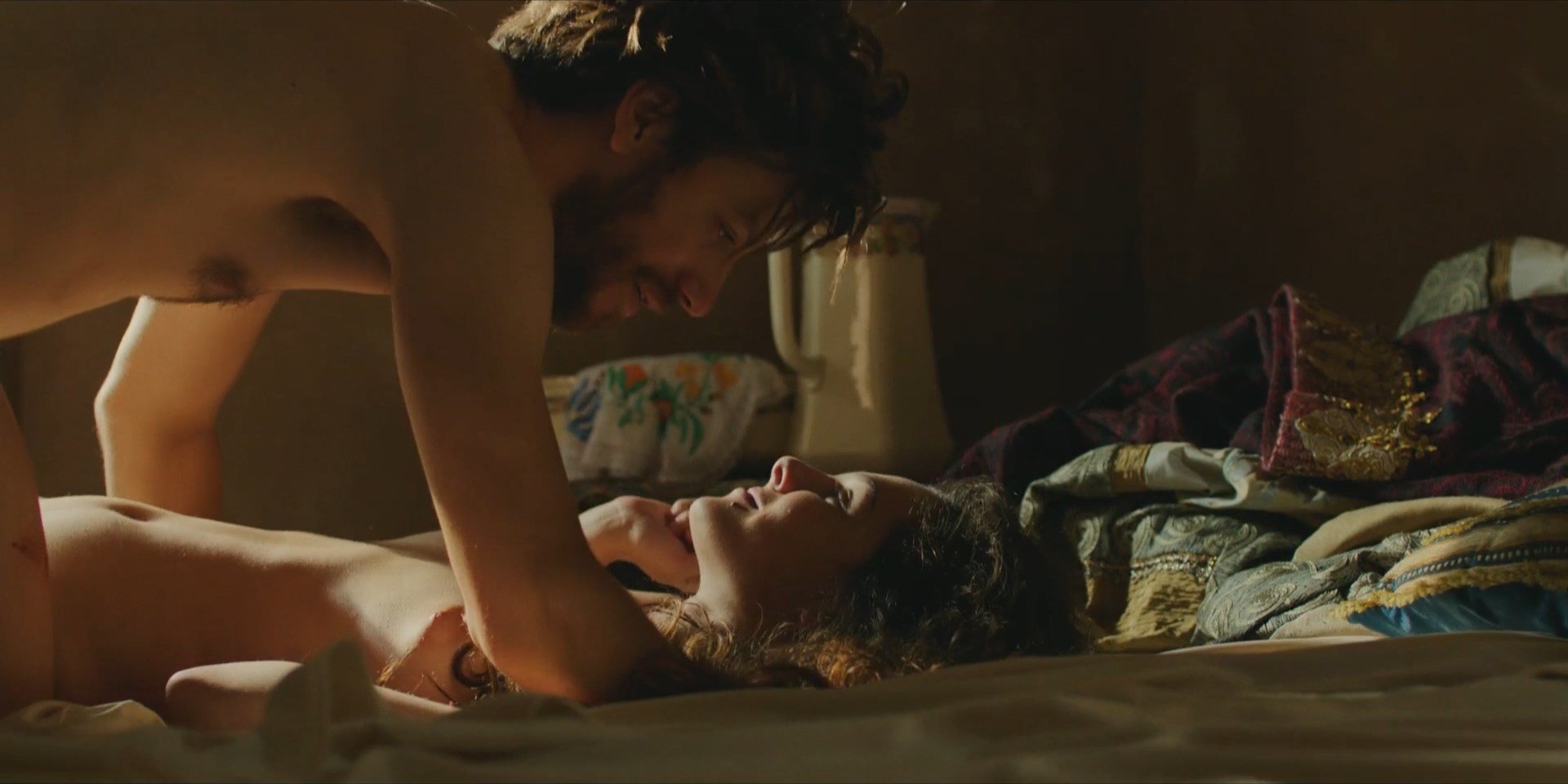 Naked women near the cliff are horizontal