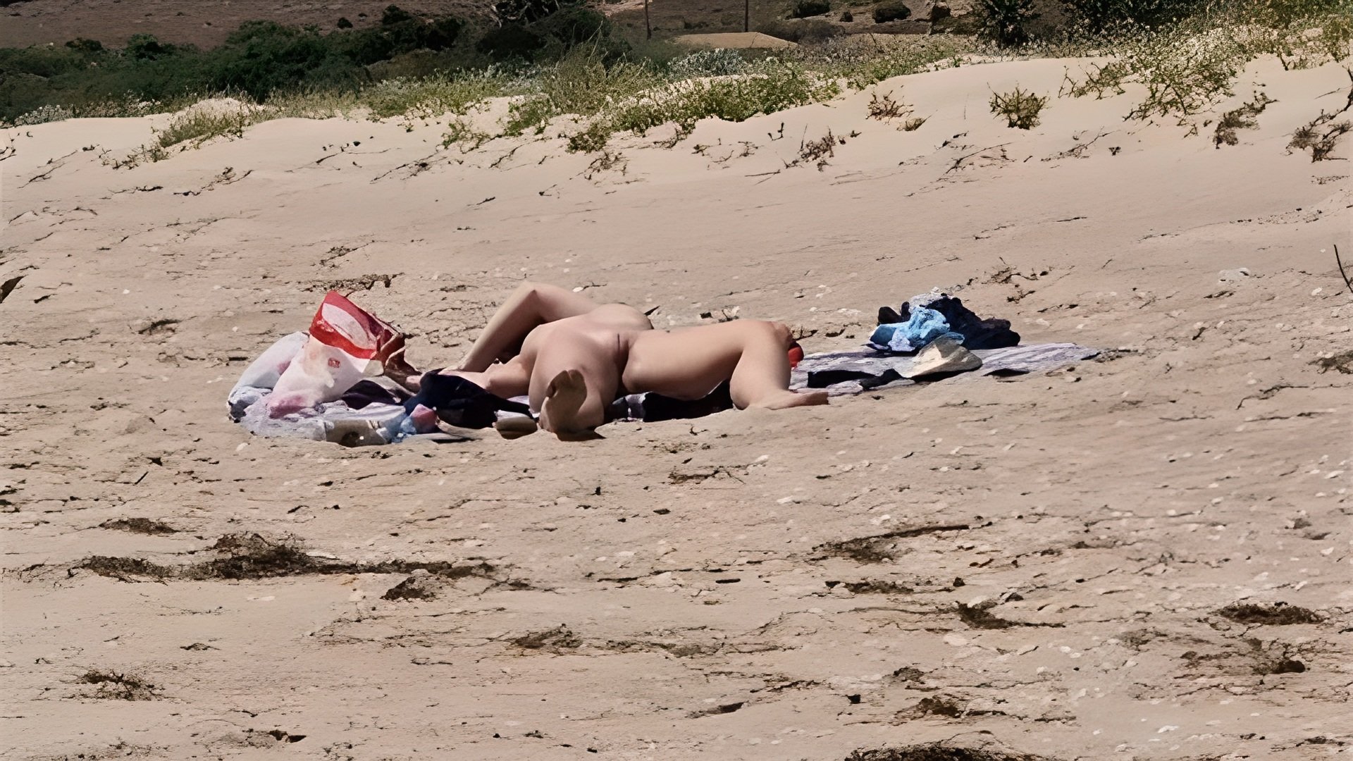 Erection on a nudist beach