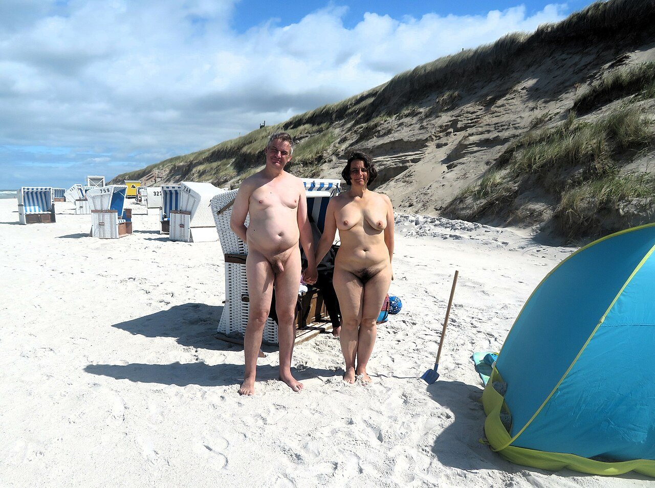 Beginner nudists on the beach