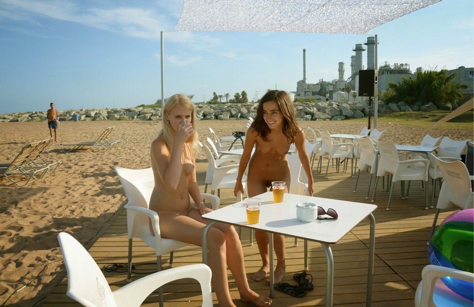 Naked women on a public beach