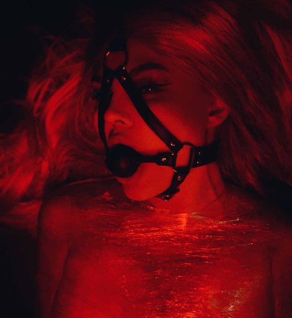 Nude photo shoot in red bdsm room