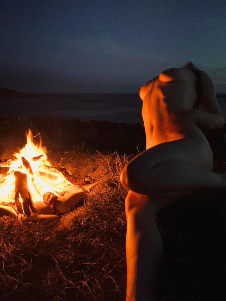 Photo: Girls naked by the fire