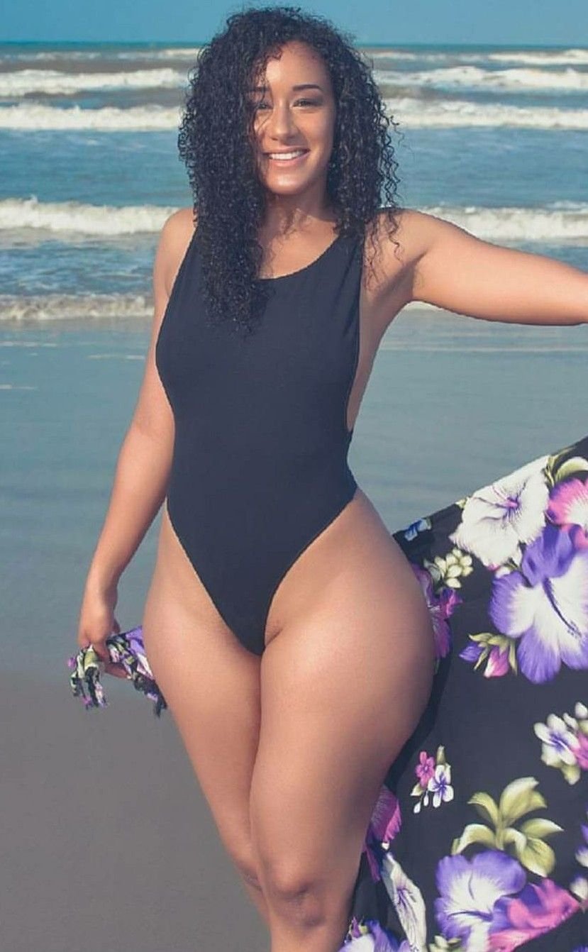 Black woman in extreme bikini