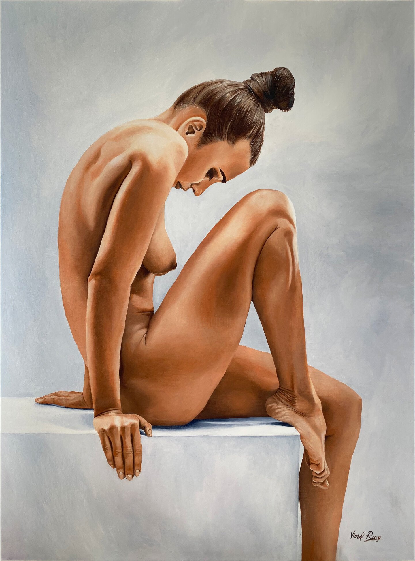 Naked Russian undresses and laughs