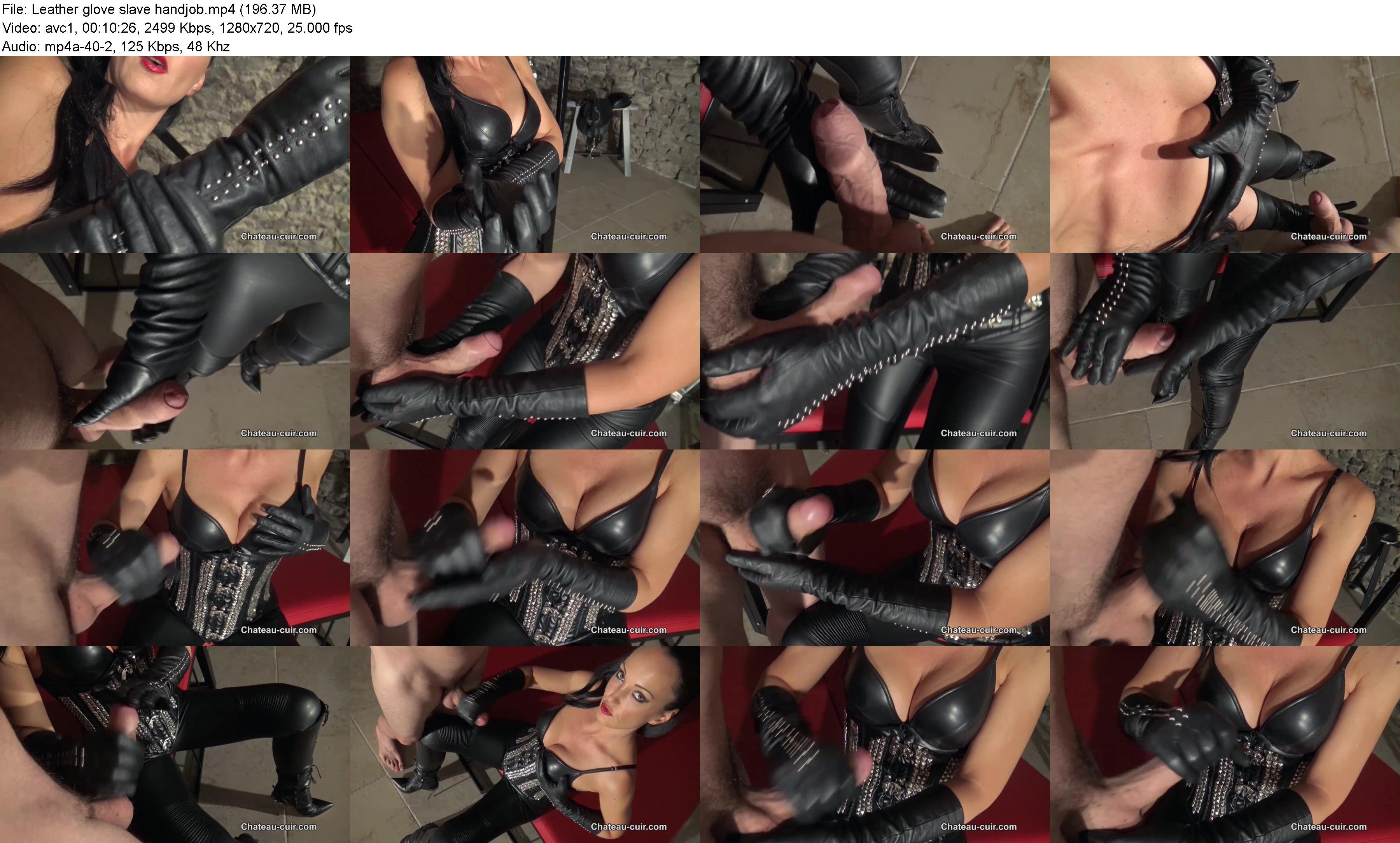 Leather gloves handjob