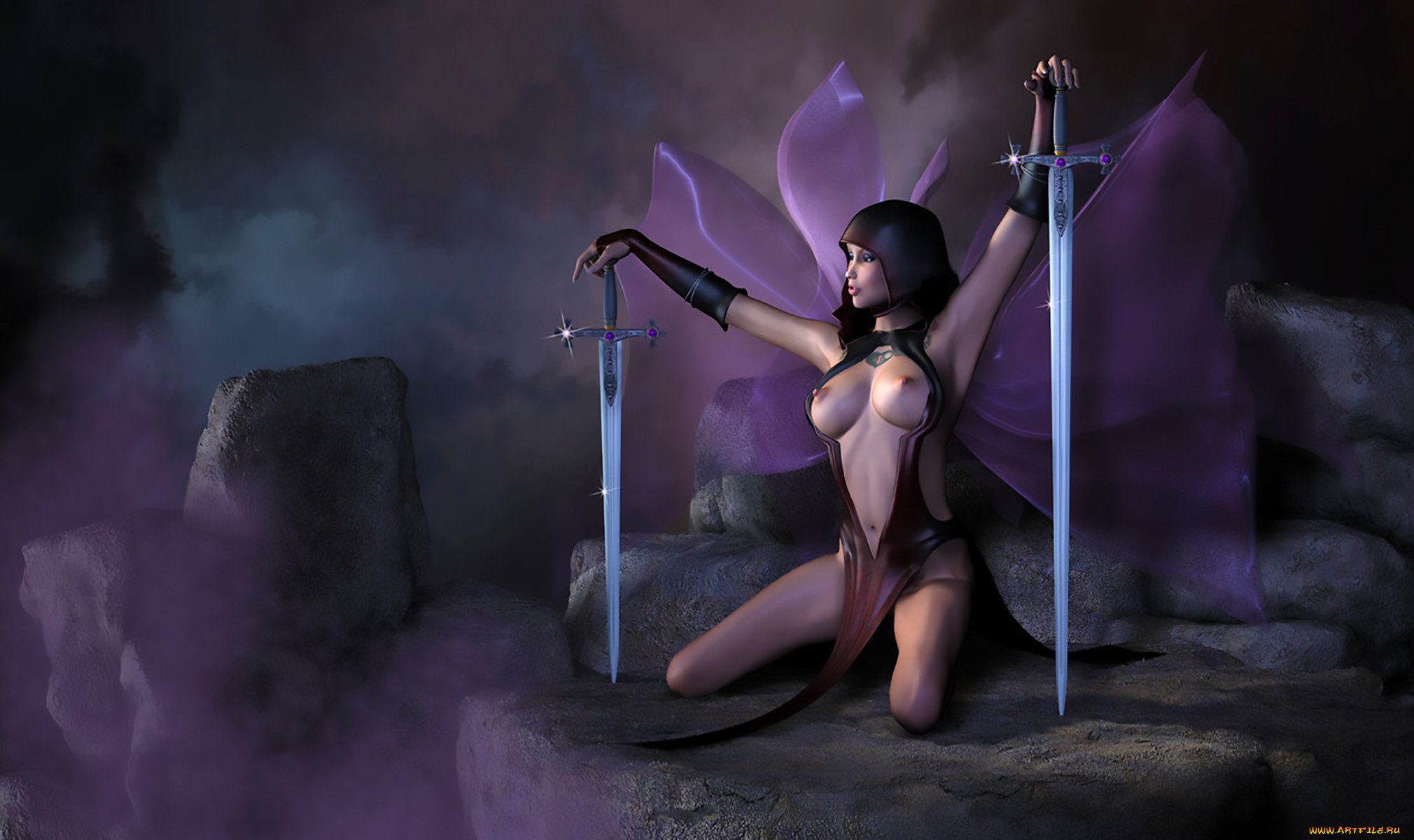 Nude Girls Fighting with Swords