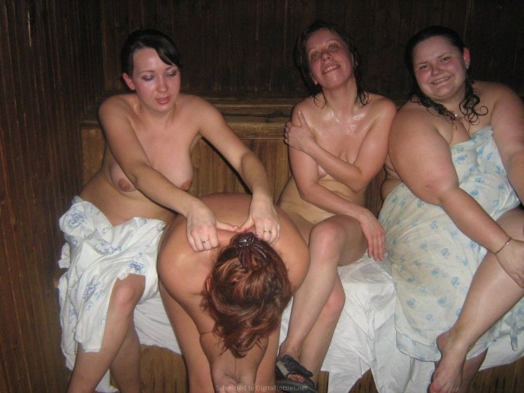 Naked girls in a sauna with men