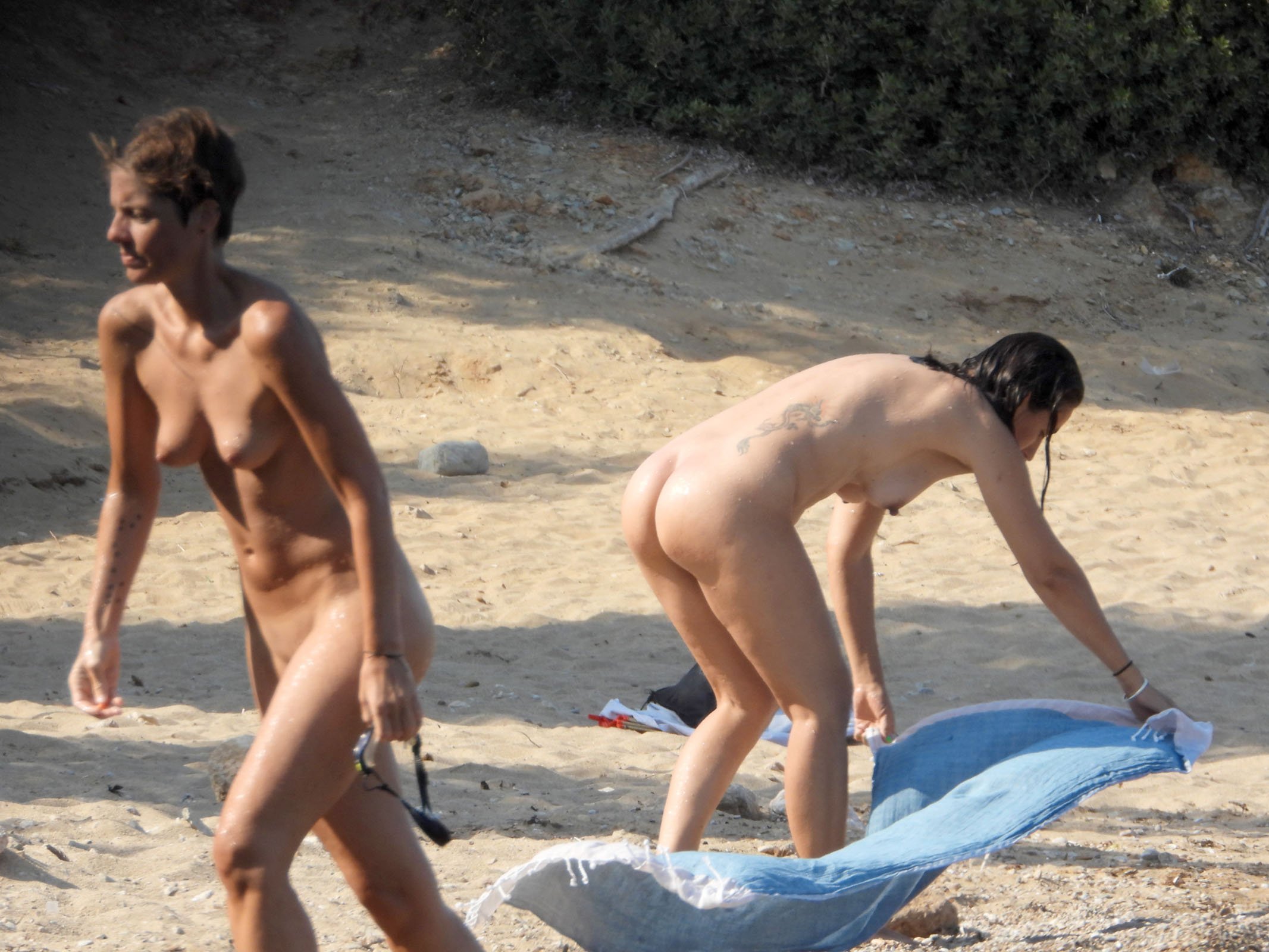 Naked tanned women on the beach