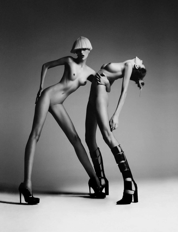 Naked fashion models on the catwalk