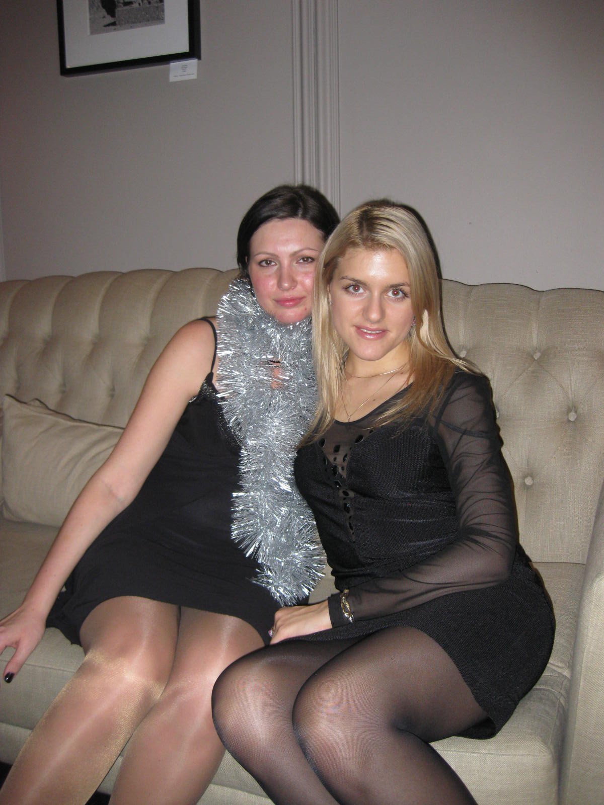Girlfriends in stockings dresses