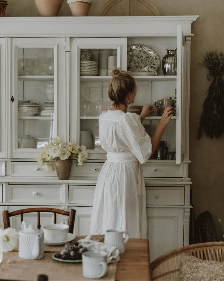 Girl in cream with strawberries