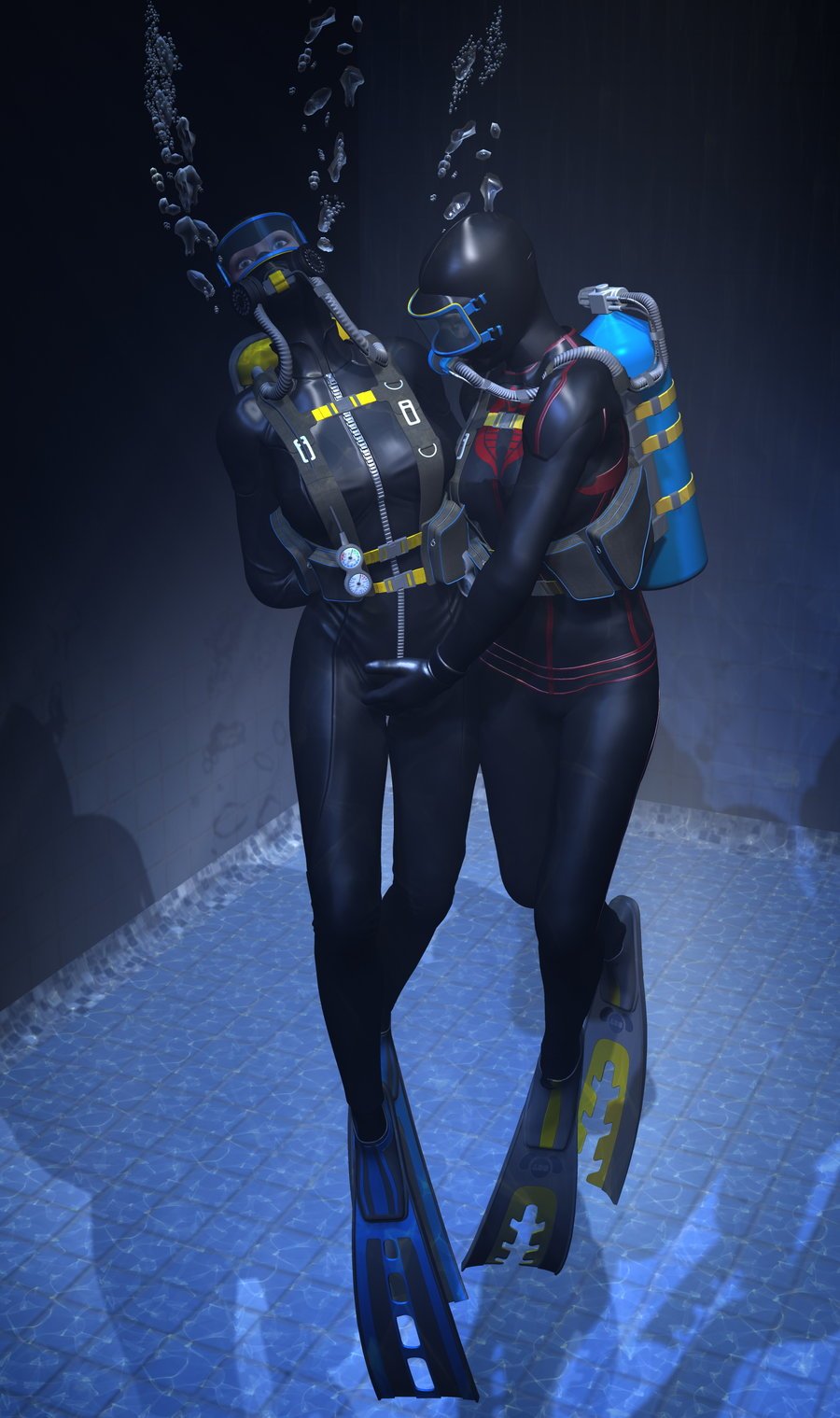 Aqualangists naked